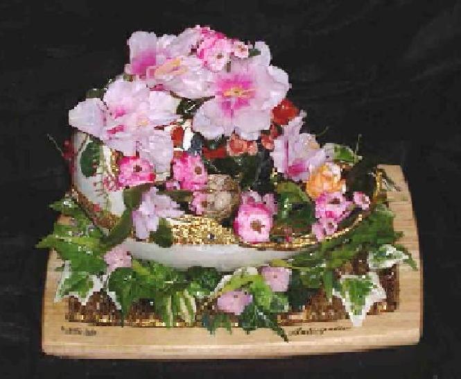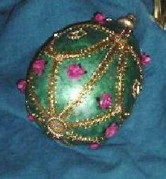 For example, this commissioned Ducallier is the "Dominion" and has a mottled green matrix, being embelished with ruby-pink roses and is trimmed in woven gold and brilliances.