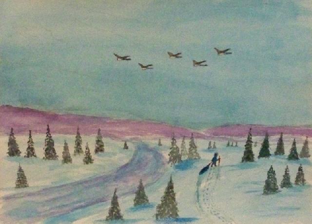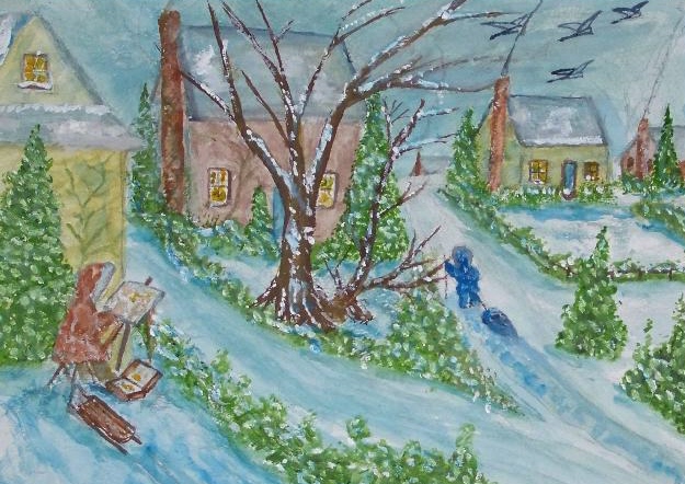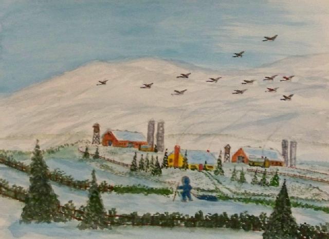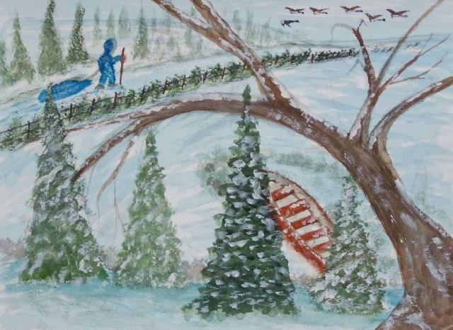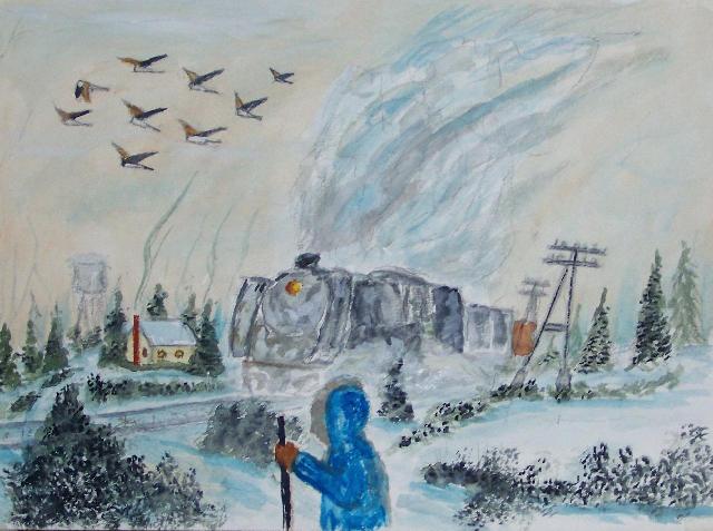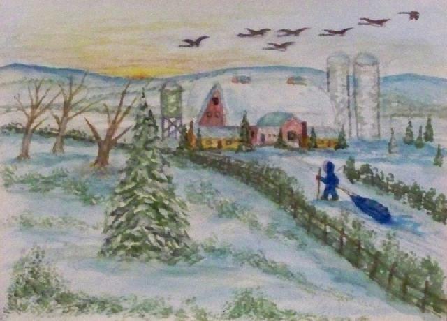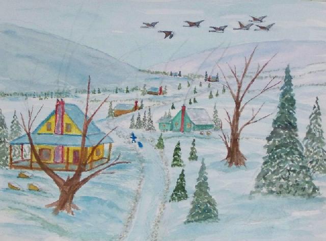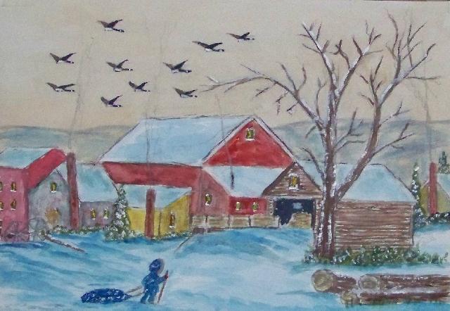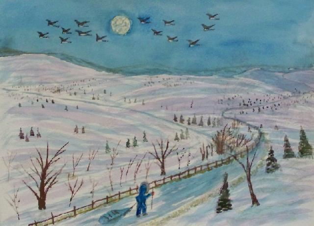 We are pleased to present the Coming Home Watercolour Series of 530 paintings by our Works-Master, done in Wash and Dry-brush, the primitive style of the winter series shows a lone traveller heading home
