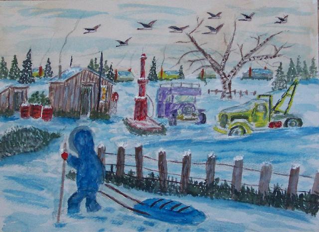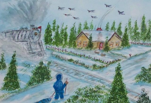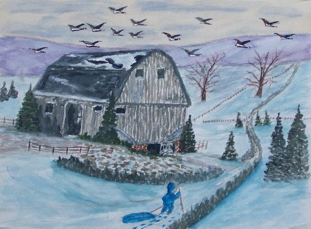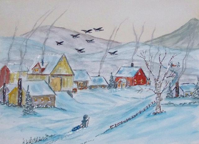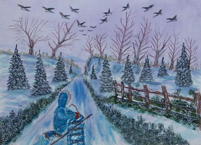 We are pleased to present the Coming Home Watercolour Series of 530 paintings by our Works-Master, done in Wash and Dry-brush, the primitive style of the winter series shows a lone traveller heading home