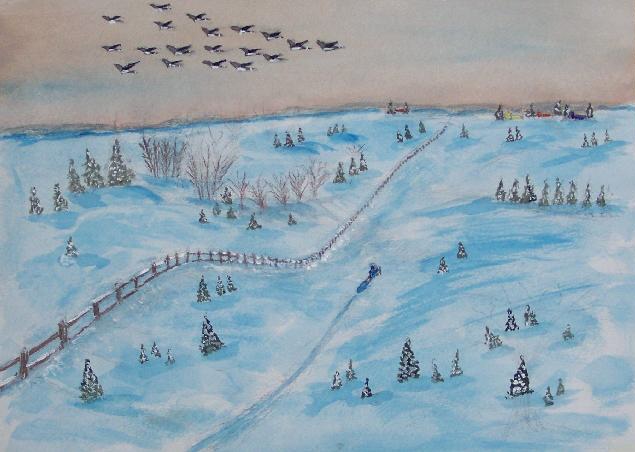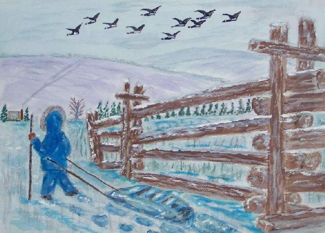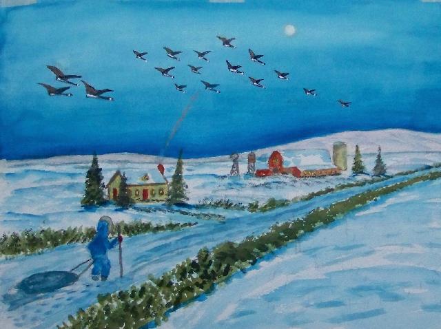 We are pleased to present the Coming Home Watercolour Series of 530 paintings by our Works-Master, done in Wash and Dry-brush, the primitive style of the winter series shows a lone traveller heading home
