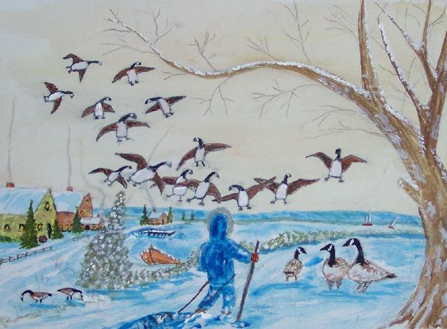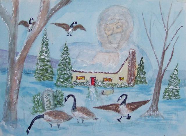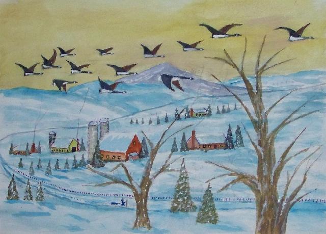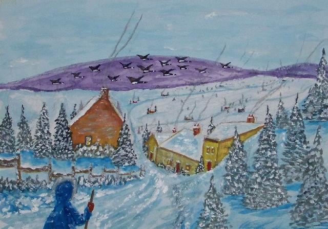 We are pleased to present the Coming Home Watercolour Series of 530 paintings by our Works-Master, done in Wash and Dry-brush, the primitive style of the winter series shows a lone traveller heading home