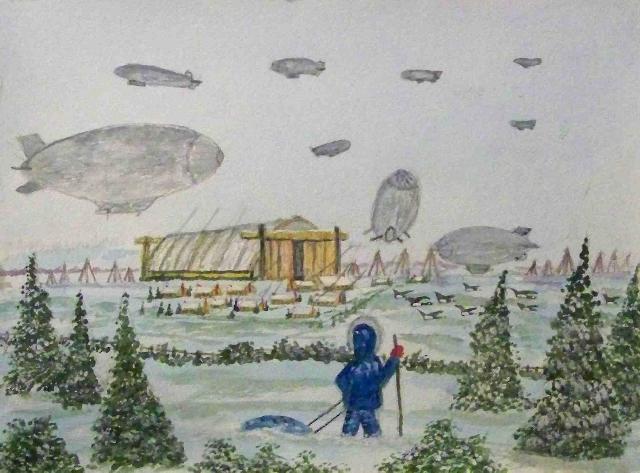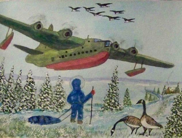 We are pleased to present the Coming Home Watercolour Series of 530 paintings by our Works-Master, done in Wash and Dry-brush, the primitive style of the winter series shows a lone traveller heading home