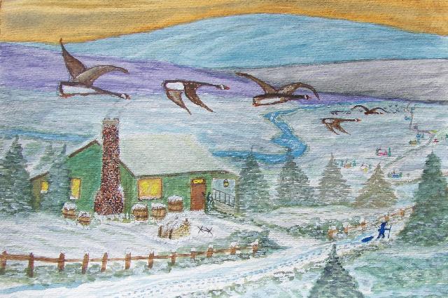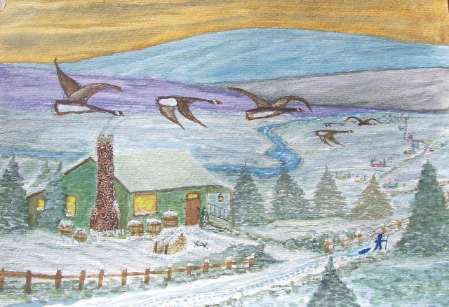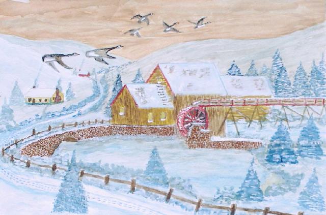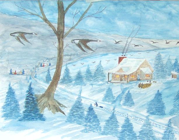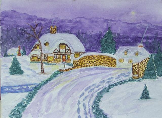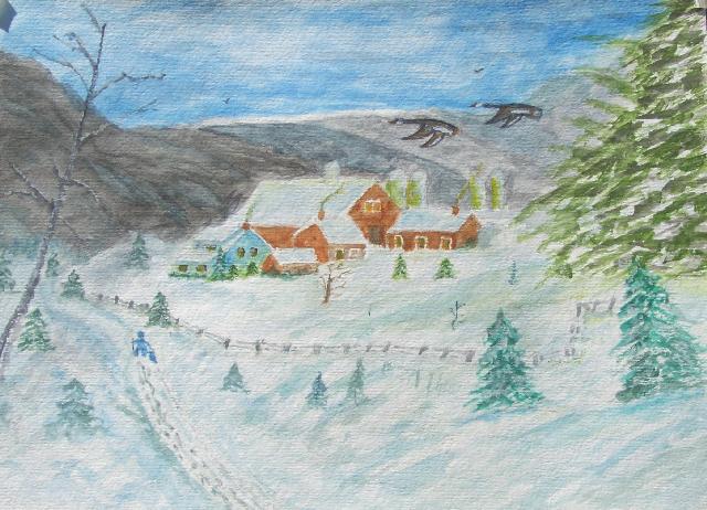 We are pleased to present the Coming Home Watercolour Series of paintings done by our Works-Master - the winter series shows a lone traveller heading home.